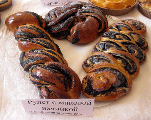 3. Хлебобулочные изделия на смеси «ПФАНЛ темная» (Хлеб зерновой)4. Изделия на смеси «Хефетайг базисмикс 10%» (Рулеты с маковой, ореховой и кокосовой начинками, Бриошь классический, Ватрушка с яблочной начинкой).